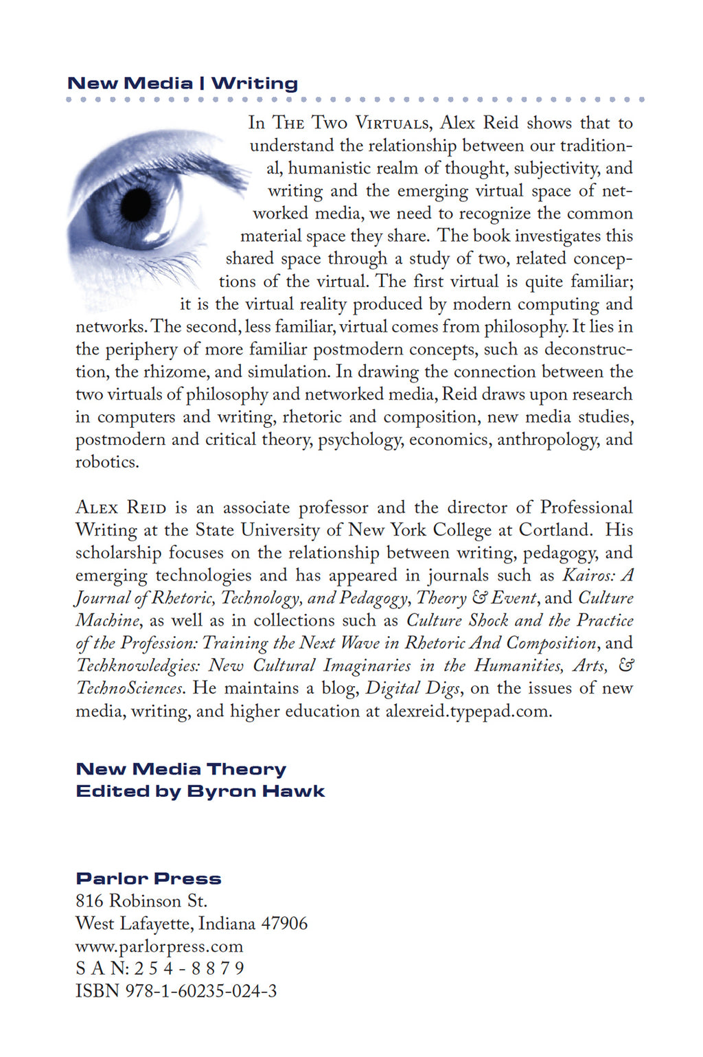 978-1-60235-022-9 (paperback, $27.00); 978-1-60235-023-6 (hardcover, $54.00); 978-1-60235-024-3 (PDF, $19.99); 978-1-60235-532-3 (EPUB, $19.99) © 2007 by Parlor Press. 224 pages, with bibliography, and index