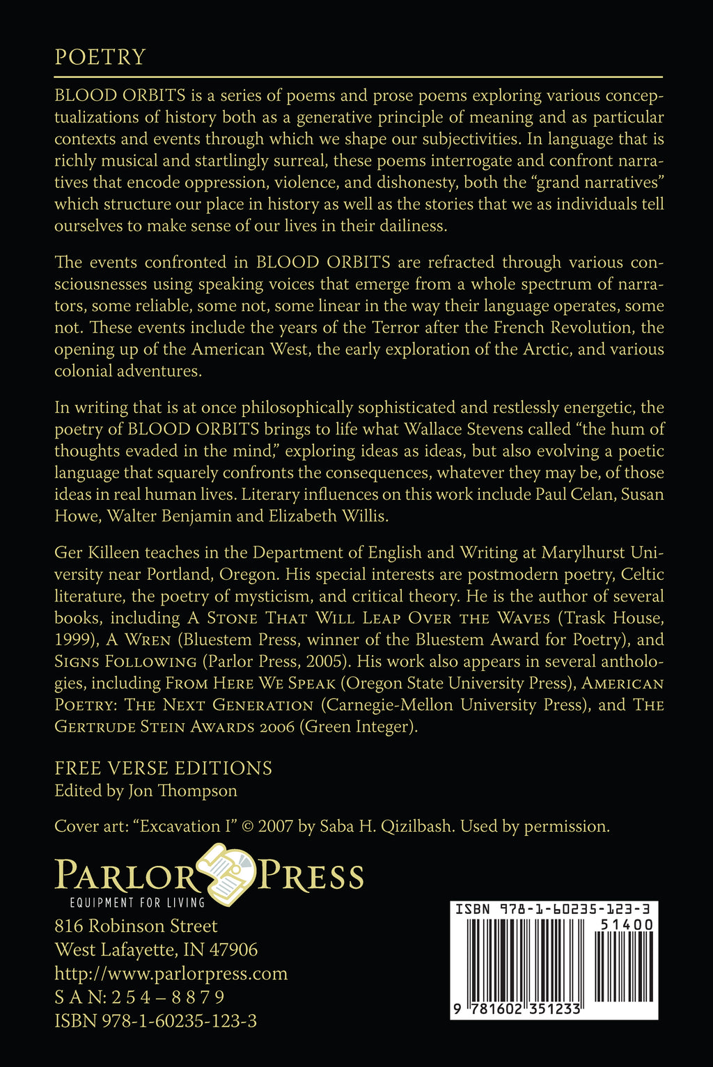 Blood Orbits is a series of poems and prose poems exploring various conceptualizations of history both as a generative principle of meaning and as particular contexts and events through which we shape our subjectivities.