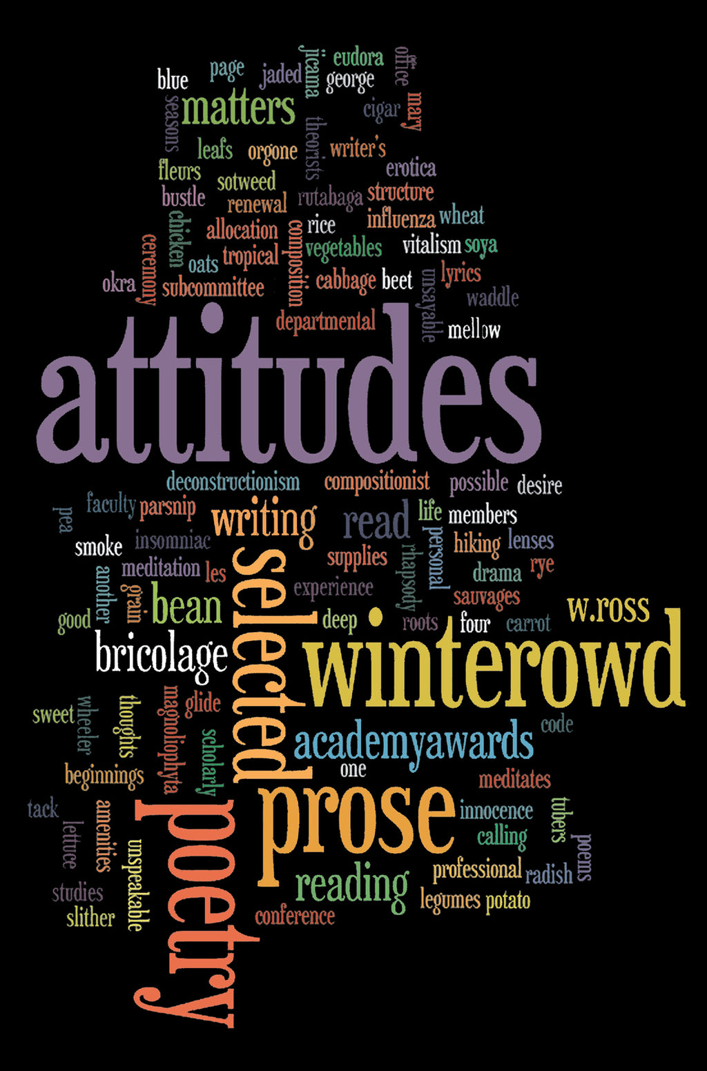 At times Winterowd is playful, and at other times he's the mordantly cynical critic--of the academy, of academicians, and of society in general.  His attitudes are leavened by wit, and his insights are never mundane.  Attitudes is for anyone who has become jaded by the gray monotone of much writing in our profession. Attitudes includes essays, poems, and a novella, Academy Awards. All are published here for the first time.