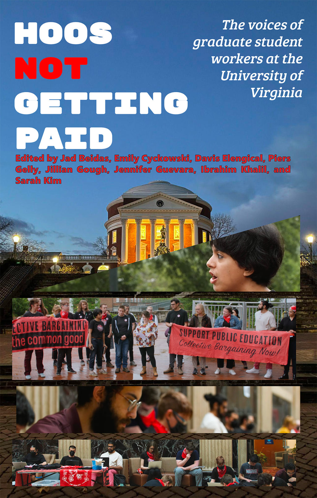 The past few years have seen a massive wave of union drives, strikes, and other coordinated labor actions, from Starbucks to Hollywood, and universities are no exception. Across the country, graduate student workers are coming together to change their working conditions. In Hoos Not Getting Paid, we meet six unionized graduate student workers at the University of Virginia who are doing precisely that. (“Hoos” is short for “Wahoos,” which is the unofficial nickname of members of the UVA community.) But there’s a twist: this book was created by students in a first-year writing course at UVA. Working together with their professor, Piers Gelly, they reported, wrote, edited, mixed, and distributed an original podcast series featuring candid, searching conversations between themselves and these graduate student workers. This book shares those conversations, along with student-created discussion guides and appendices that encourage writing students and teachers to adopt similarly inquisitive practices about the labor conditions of their school. With help from this book—plus a little courage and curiosity—you’ll have everything you need to develop, produce, and distribute your own podcast project about the essential but often underpaid graduate student workers at your university.