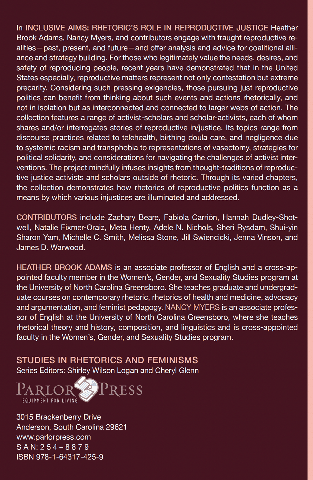 The collection features a range of activist-scholars and scholar-activists, each of whom shares and/or interrogates stories of reproductive in/justice. Its topics range from discourse practices related to telehealth, birthing doula care, and negligence due to systemic racism and transphobia to representations of vasectomy, strategies for political solidarity, and considerations for navigating the challenges of activist interventions. The project mindfully infuses insights from thought-traditions of reproductive justice activists and scholars outside of rhetoric. Through its varied chapters, the collection demonstrates how rhetorics of reproductive politics function as a means by which various injustices are illuminated and addressed.