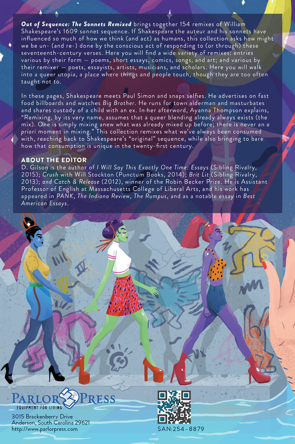 Out of Sequence: The Sonnets Remixed brings together 154 remixes of William Shakespeare's 1609 sonnet sequence. If Shakespeare the auteur and his sonnets have influenced so much of how we think (and act) as humans, this collection asks how might we be un- (and re-) done by the conscious act of responding to (or through) these seventeenth-century verses. Here you will find a wide variety of remixes: entries various by their form — poems, short essays, comics, songs, and art; and various by their remixer — poets, essayists, artists, musicians, and scholars. Here you will walk into a queer utopia, a place where things and people touch, though they are too often taught not to.