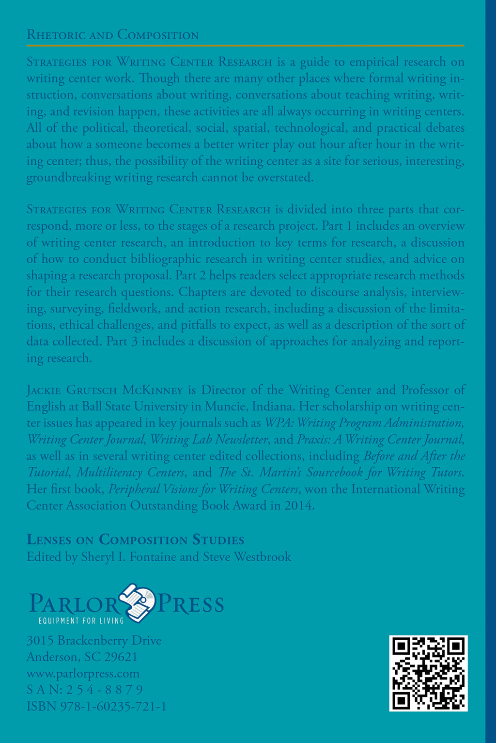 Strategies for Writing Center Research is divided into three parts that correspond, more or less, to the stages of a research project. Part 1 includes an overview of writing center research, an introduction to key terms for research, a discussion of how to conduct bibliographic research in writing center studies, and advice on shaping a research proposal. Part 2 helps readers select appropriate research methods for their research questions. Chapters are devoted to discourse analysis, interviewing, surveying, fieldwork, and action research, including a discussion of the limitations, ethical challenges, and pitfalls to expect, as well as a description of the sort of data collected. Part 3 includes a discussion of approaches for analyzing and reporting research.