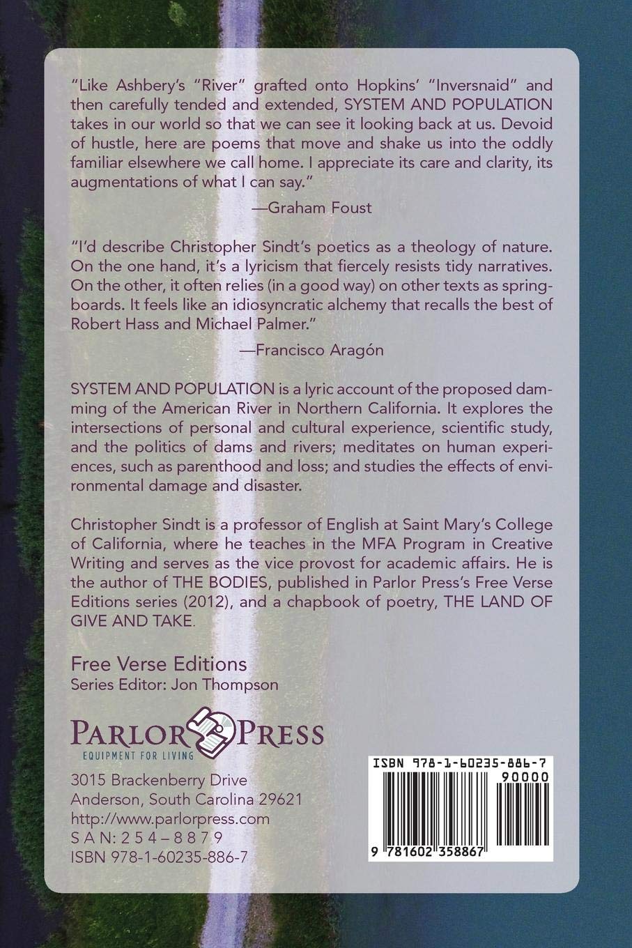 System and Population is a lyric account of the proposed damming of the American River in Northern California. It explores the intersections of personal and cultural experience, scientific study, and the politics of dams and rivers; meditates on human experiences, such as parenthood and loss; and studies the effects of environmental damage and disaster.